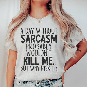 Welcome to a world of sass and humor with our "A Day Without Sarcasm" tee – the ultimate choice for women's graphic tees lovers who adore making a statement! This funny t-shirt for women is the perfect addition to your stylish graphic t-shirts collection. Unleash your inner wit and make every day a sarcastic day by shopping this unique piece from our online graphic tee shop.