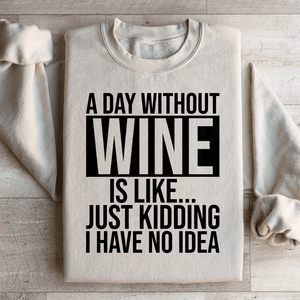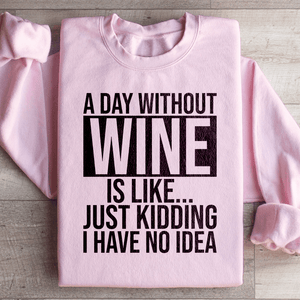 Pair it effortlessly with jeans, leggings, or your favorite loungewear for a relaxed yet amusing look. Our "A Day Without Wine is like just kidding I have no idea" sweatshirt is not just a garment; it's a statement for those who can't imagine a day without their beloved vino. Cheers to comfort, style, and, of course, a good glass of wine!
