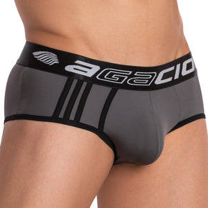 This Agacio men's brief underwear is made from a light-weight fabric blend of polyester and spandex, offering both comfort and durability. The functional pouch of men's sexy brief provides ample support and the thick elastic waistband ensures a secure fit. The vertical piping on the side adds a touch of seduction, while the color contrast piping on the edge enhances its design. Ideal for both home and workwear, this men's enhancing underwear is comfortable enough for all-day wear and even for packing on your next holiday. The stretchy nature of the fabric allows for a perfect fit to your body type, elevating your sexy areas for a flattering curve. Whether you're participating in physical activities or simply lounging, this brief is the perfect choice for style and comfort.
