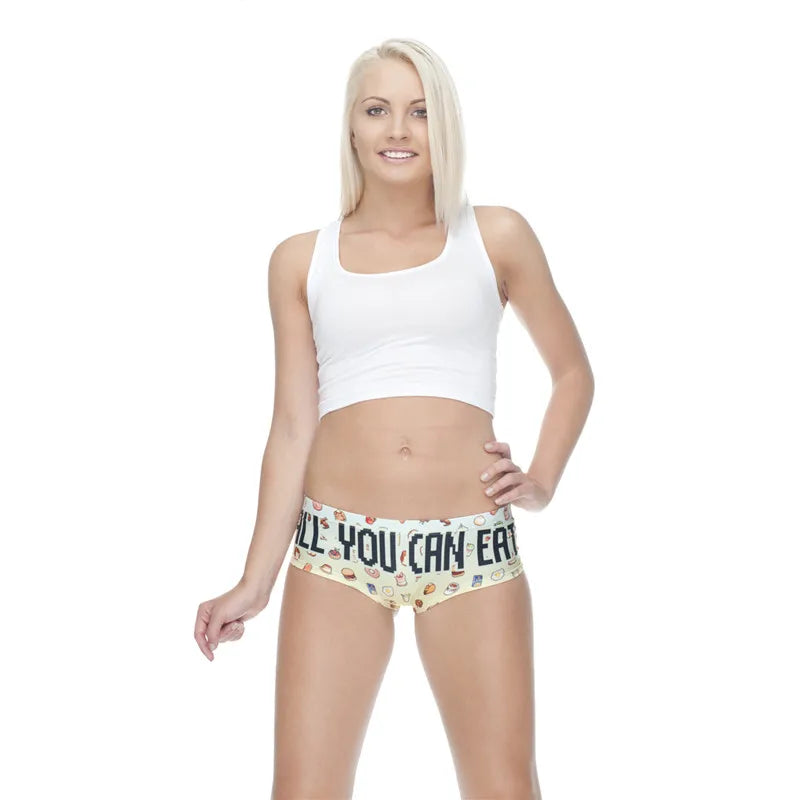 - Eye-Catching 3D Print: A playful All You Can Eat Humor Panty design that demands attention.