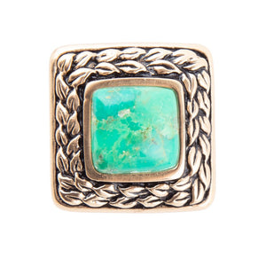Let your spirit take flight with this beautiful Aloha Lime Turquoise Ring! Crafted from genuine lime turquoise and bronze, its Hawaiian-inspired design will take you to a place of serenity and peace. The ring is 1" at its widest point for a truly eye-catching piece. Ready to embrace a new adventure? 🌴🌊💍