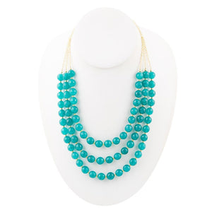 Argo Blue Teal Jade Triple Strand Golden Necklace