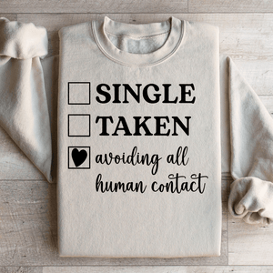 Keywords: Statement sweatshirt, Avoiding All Human Contact, introvert fashion, casual comfort, humorous apparel..
