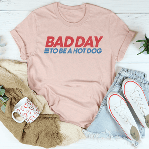 Get ready to turn heads with our cheeky "Bad Day To Be A Hot Dog" T-shirt! Perfect for summer BBQs or just lounging around, this tee injects a fun twist into your casual wardrobe. Its playful message is sure to spark conversations and bring a smile to everyone's face.