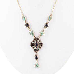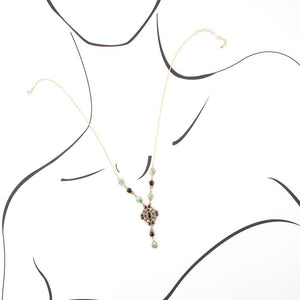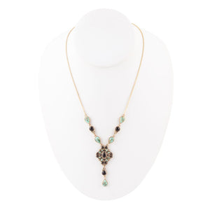 Gorgeous and unique, our Onyx and Turquoise Barcelona Y-Necklace makes a perfect statement piece. Hand-crafted with genuine Bronze, Turquoise, and Onyx, this necklace is sure to turn heads! Fitted with an adjustable 18"-20" extender chain, it makes a great gift for someone special. Sparkling and lightweight at just .63 oz, you won't want to miss out on this stunner.