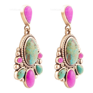 Barcelona Blue Turquoise and Pink Agate Golden Drop Earrings