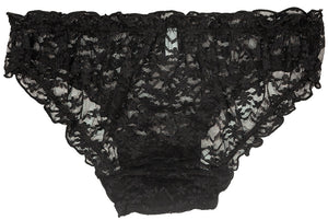 So cute! Pretty black lace all over. Cotton gusset. Ruffles at the waist and leg.