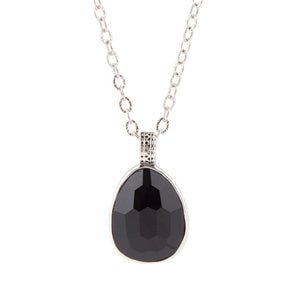 Black Onyx and Sterling Silver Teardrop Pendant Necklace