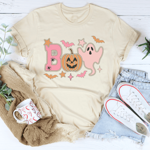Saddle up for some spooky fun with this playful women’s T-shirt that combines Western flair with Halloween spirit, aptly named "Boo Western." It's perfect for those who love a good ghost story told around a campfire under the stars.