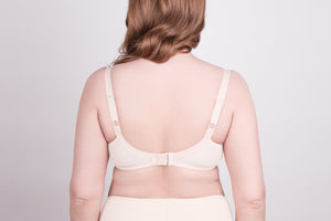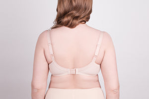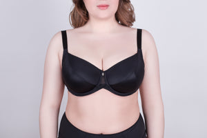 Made from elastic knit fabric. The bra with soft underwired cups has triple diagonal segmentation. This design provides a high degree of support due to the lower part of the cup, which performs a shaping function - lifts, gathers from the sides, centers the breast, creating a round shape. A four-row closure allows for perfect adjustment of the bra's volume. The width of the strap tape and side parts of the band varies depending on the size. The larger the size, the wider the strap and side parts.