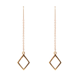 These Bronze Geometric Threader Earrings add a touch of elegance to any style. Crafted and finished by hand, they feature genuine bronze that falls 2.25" from the ear and are adorned with a beautiful diamond at the end. Add an eye-catching accent to any outfit and let your unique beauty shine!