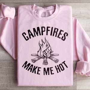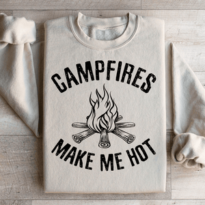 Crafted from a soft, durable fabric, this sweatshirt is ideal for those chilly evenings spent around the fire or for casual outdoor adventures. The phrase "Campfires Make Me Hot" is featured in a fun, rustic font, capturing the essence of campfire enthusiasts and nature lovers.