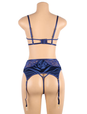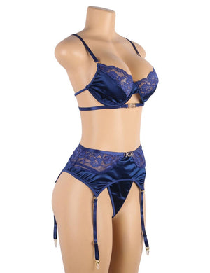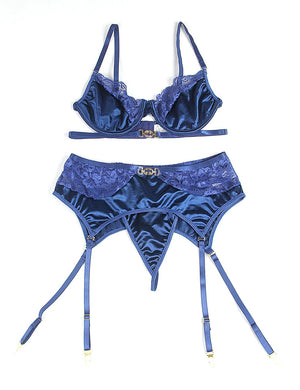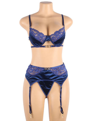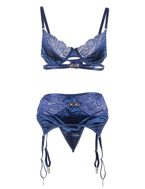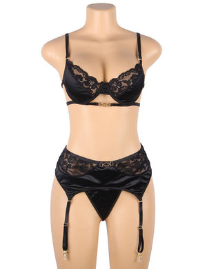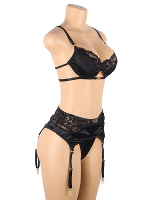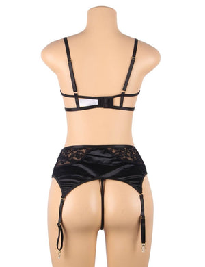 - Set Includes: Bra + Garter Belt + Panties