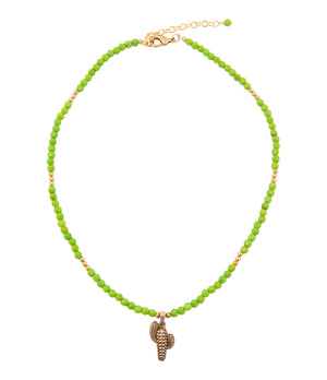 Charmed Cactus Lime Green Turquoise Golden Pendant Necklace