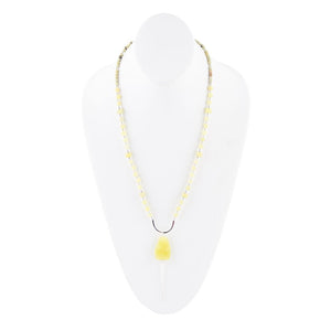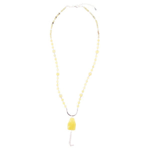 This breathtaking necklace features genuine lemon jade and sterling silver, expertly crafted and finished by hand. The beaded design, with a beautiful jade pendant, will add a touch of elegance to any outfit. Measuring 22" with a 2" extender and lobster clasp closure, this necklace weighs 1.16 oz in green and silver. Perfect for those who appreciate quality and unique jewelry.