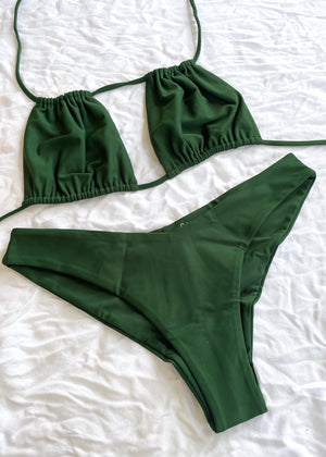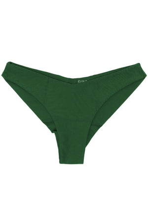 We revised our previous best selling cheeky bottoms to give you an even better version of our best-selling cheeky bottoms. Our cheeky bottoms are made from regenerated plastic. We added a seam in the back to hug the shape of you booty for a perfect fit. These bottoms come in our newest Emerald color, a dark earthy forest green that will complement all skin tones.