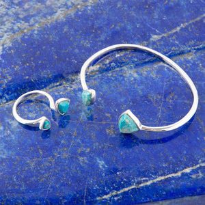 Take your style to the next level with this dazzling chrysocolla open cuff bracelet. Crafted with genuine sterling silver and beautiful chrysocolla, this adjustable cuff is guaranteed to make a statement - inner diameter of 2.5" fits most wrists! Feel confident and stylish with this gorgeous accessory.