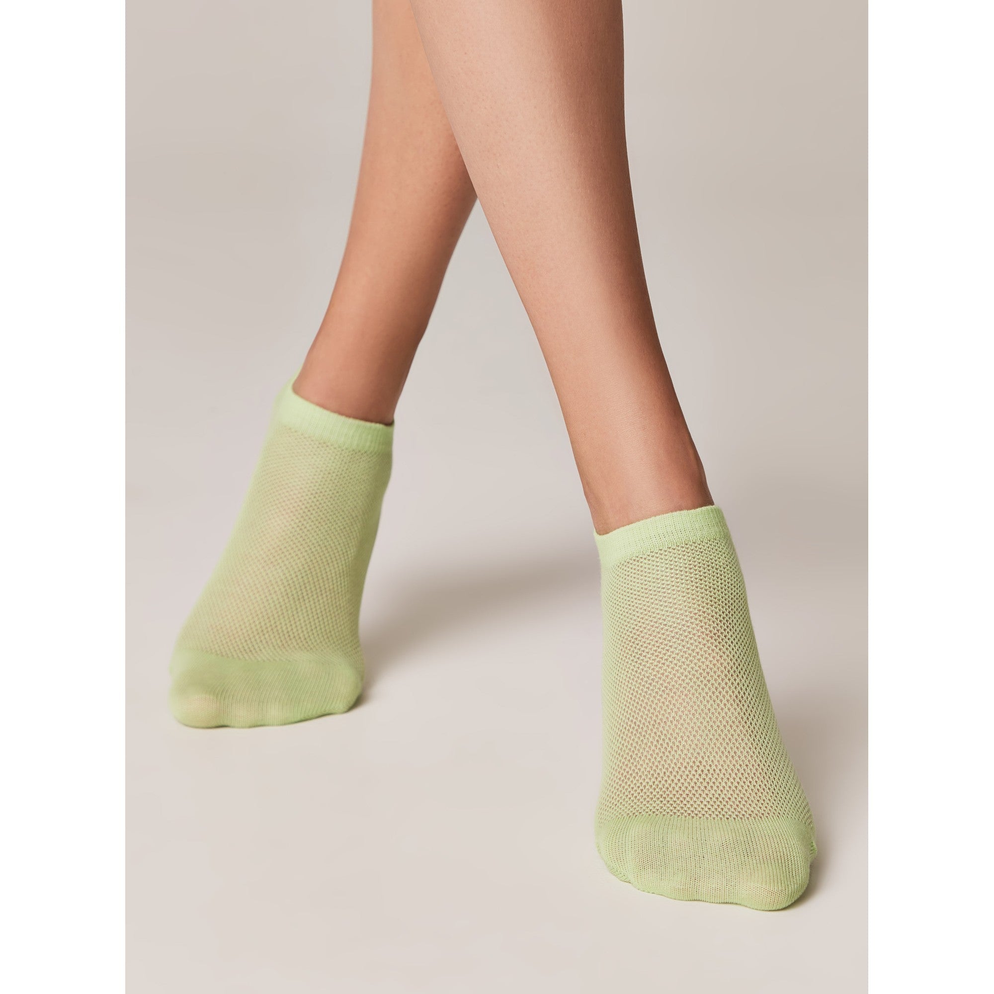 Ultra-short ACTIVE socks made of soft cotton with mesh inserts will be loved by girls who value comfort and like to emphasize their individuality.