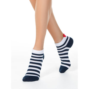 Short cotton socks with a picot-«heart» design on the cuff are created especially for active women. They are perfect for sports shoes.