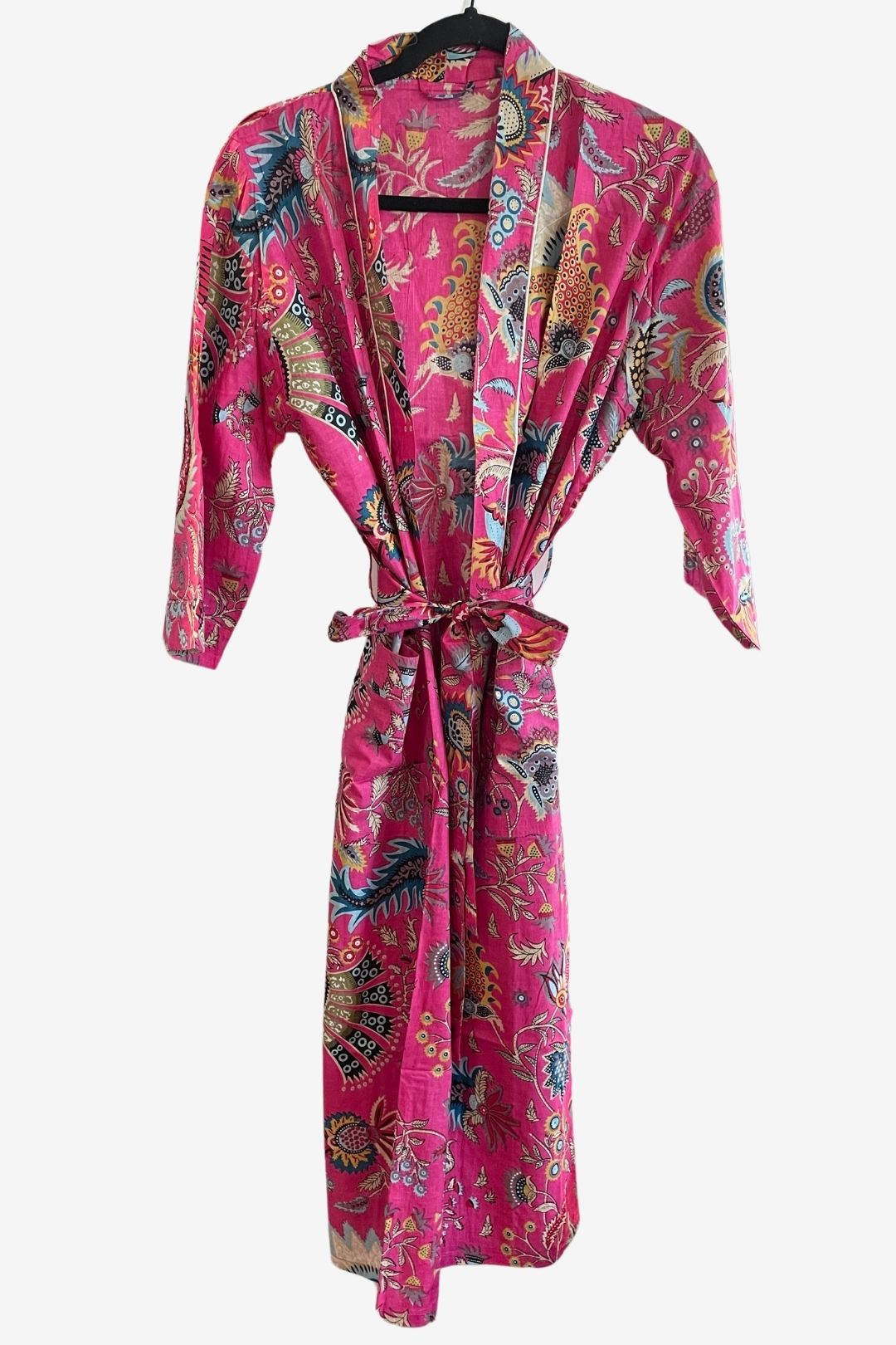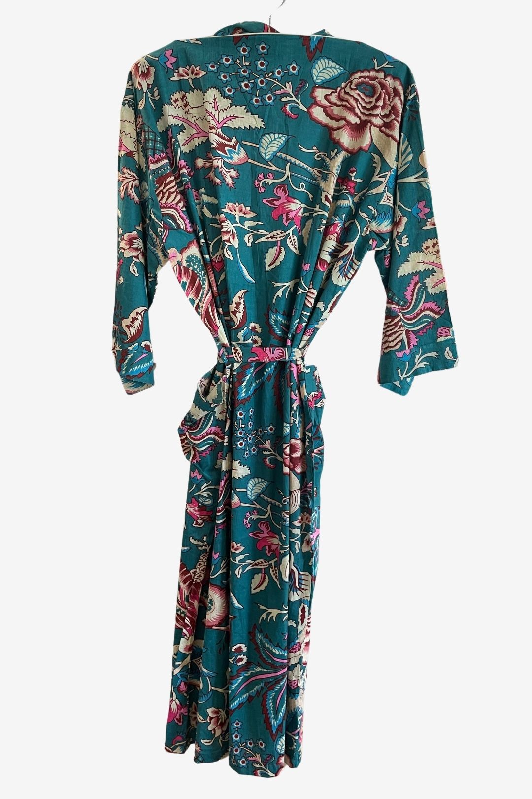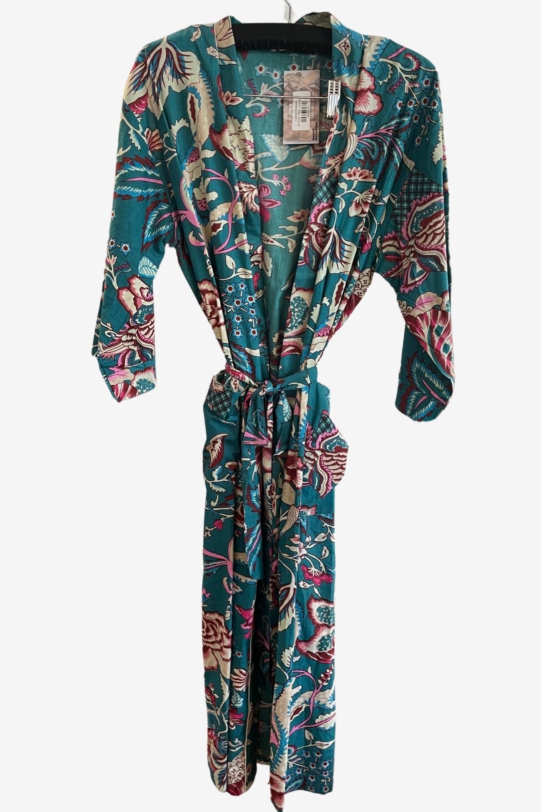 Beautiful Handprints made in small villages of Rajasthan using wooden blocks and natural dyes turned into gorgeous Robes/Kimonos. The block printing on the fabric is rich and vibrant. Colors may vary due to digital settings and lighting