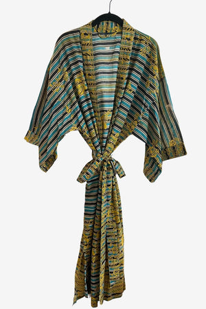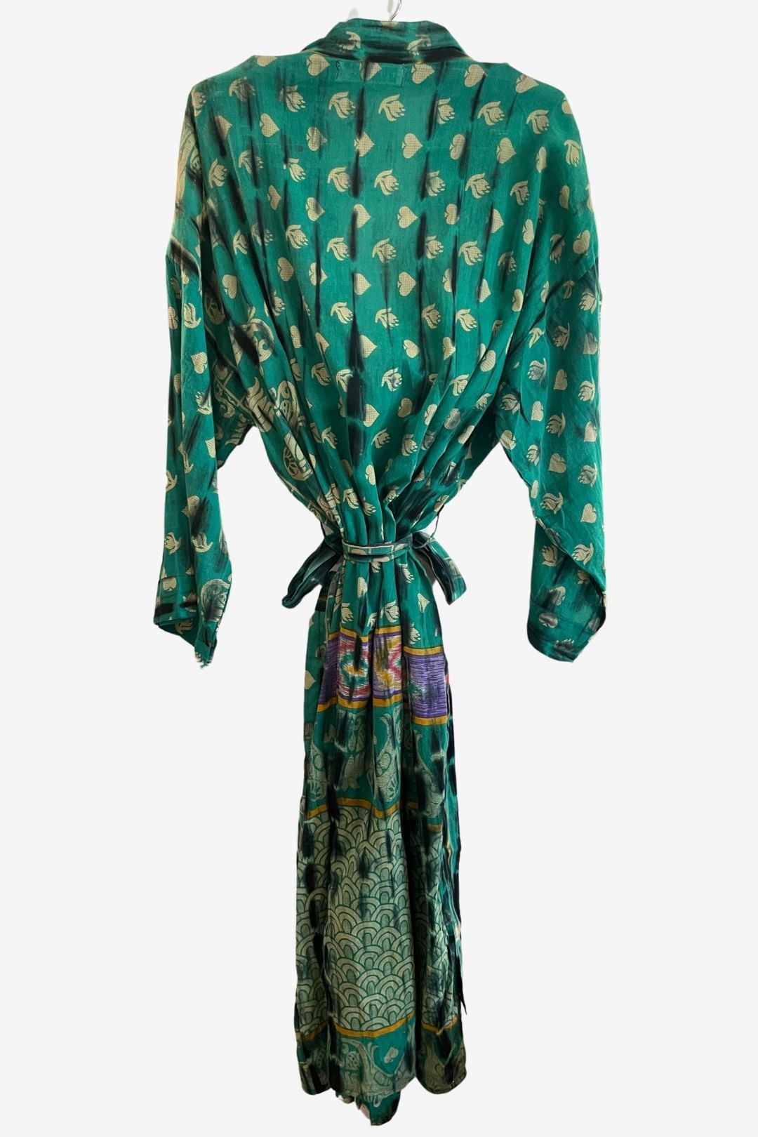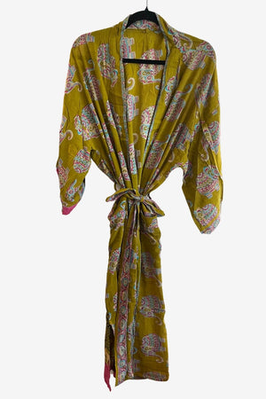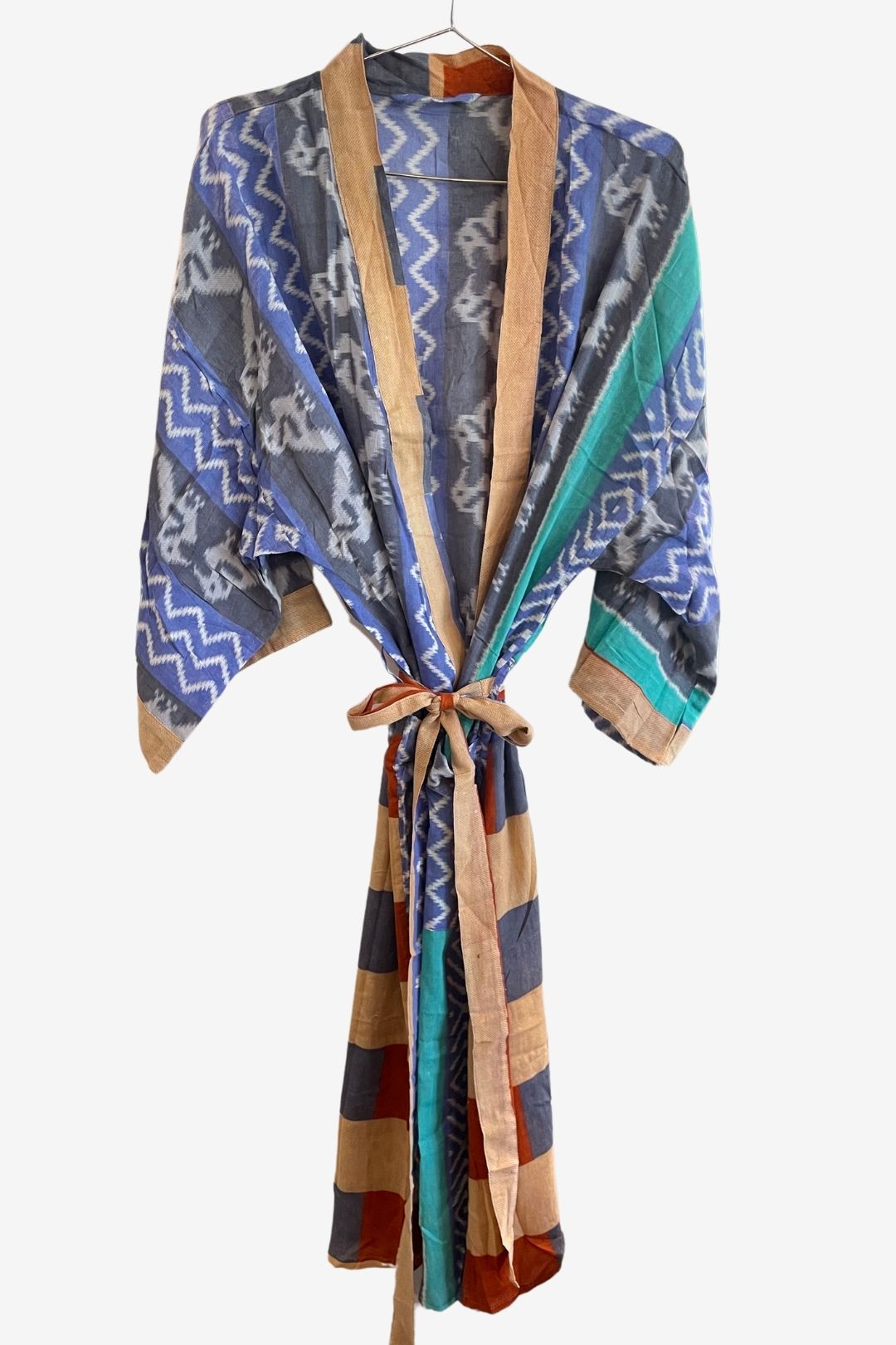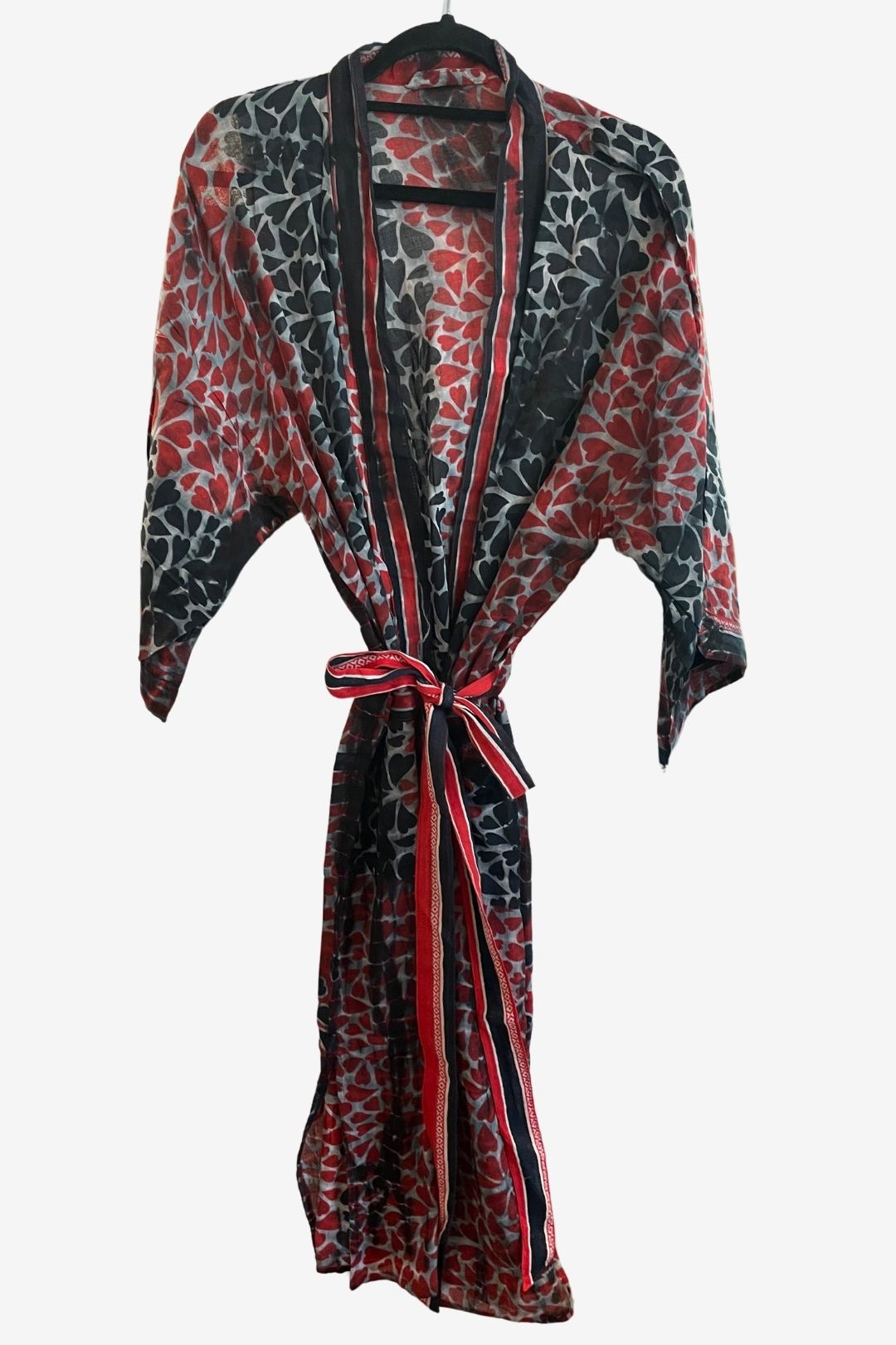 Beautiful Handprints made in small villages of Rajasthan using wooden blocks and natural dyes turned into gorgeous Robes/Kimonos. The block printing on the fabric is rich and vibrant. Colors may vary due to digital settings and lighting