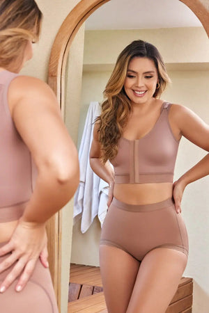Made from Powernet and lycra, our supportive bra offers high compression to improve posture and provide a flattering silhouette.