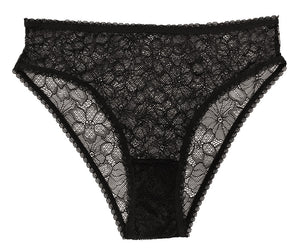 With a pretty daisy pattern, high leg, high waist, and slight cheeky cut, this is not your boring lace undie. Available in black, dark blue and bright yellow or a well-priced three pack.