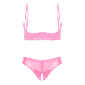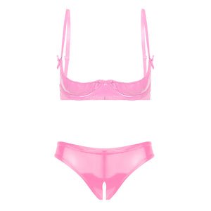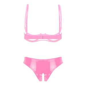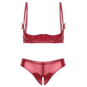 Glossy Patent Leather Lingerie Set – Underwire Bra & Crotchless Briefs