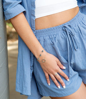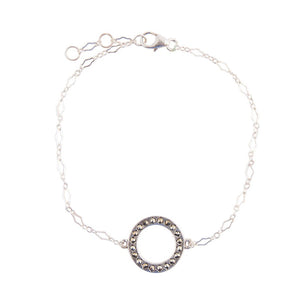 Make a statement with this exquisite Delicate Stones Line Bracelet! Handcrafted with genuine sterling silver and marcasite, it exudes sophistication and charm. The 7" - 8" adjustable size with 1" extender means you can get the perfect fit. Dazzle yourself and others with its stunning open circle centerpiece!