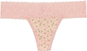 Ditsy Floral Laser Cut Thong with Lace Waistband