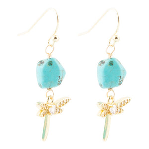 Dragonfly Blue Magnesite Golden Drop Earrings