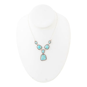 Introducing the Earth and Sky Turquoise and Silver Necklace, a stunning piece that blends natural turquoise with timeless silver. The abstract cuts of turquoise and lariat style add uniqueness and sophistication. Crafted from sterling silver, it's durable and adjustable up to 18 inches. Each necklace is hand-crafted and truly one-of-a-kind. Make a statement with this versatile and beautiful accessory.