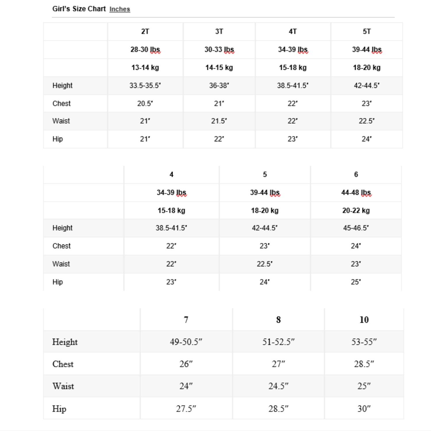 Sizing Chart