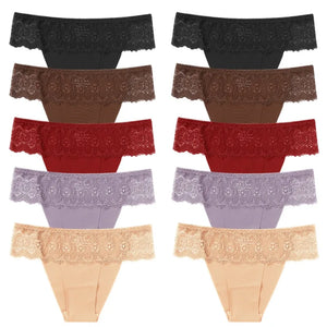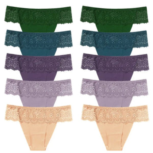 Elevate your lingerie collection with the Evelyn Lace Panties Value Pack (10-Pack)—a perfect blend of comfort, style, and versatility. Crafted from premium polyester with a breathable cotton lining, these low-rise briefs are designed for a seamless fit that feels luxuriously soft against the skin. Featuring a chic lace accent and solid ice silk fabric, they offer a smooth, invisible look under any outfit. Whether you're lounging at home or out for the day, this set ensures you stay comfortable and confident. An essential addition to any wardrobe, the Evelyn Lace Panties Value Pack combines fashion and function, offering exceptional value in every piece.