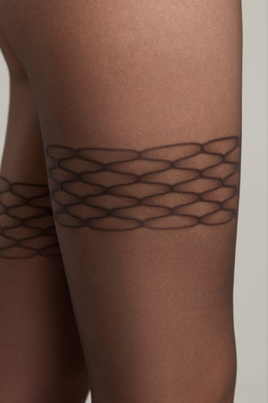- Large lace pattern imitating stockings