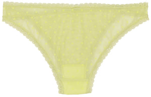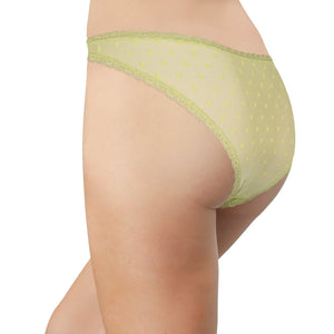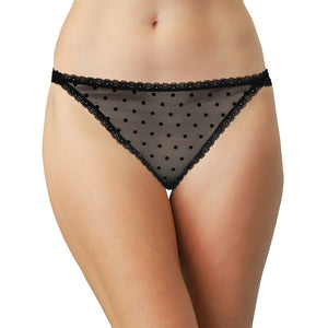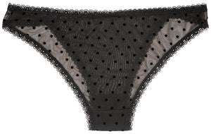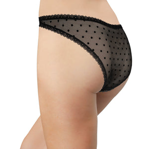 Flocked Polka Dot Mesh Cheeky with Lace Details