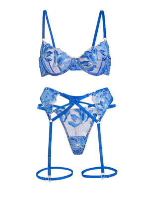 This Floral Embroidery 3pc Lingerie Set is made of 95% polyester 5% elastane.