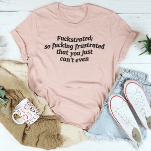 Express your overwhelming days with a twist of humor in our "Fuckstrated: So F* Frustrated That You Just Can't Even" T-shirt. This bold tee is perfect for those moments when life's irritations reach a peak, blending edgy humor with the reality of daily frustrations. It’s not just a shirt; it’s a wearable venting mechanism.