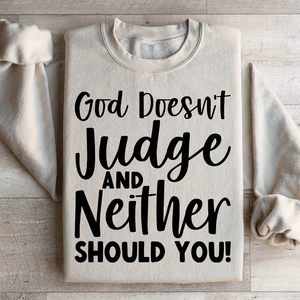 With its powerful message, you'll not only stay warm but also wear your values proudly. It's not just a sweatshirt; it's a statement of your commitment to a more compassionate world. Grab your "God Doesn't Judge And Neither Should You" sweatshirt now and let your outfit reflect the kindness that truly matters!.