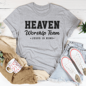 Worship isn’t just something you do—it’s who you are. This Heaven Worship Team – Jesus Is King t-shirt is a bold declaration of faith, a reminder that no matter where you are, your heart is always praising. Whether you’re singing in church, lifting your hands in worship, or simply living a life that reflects His glory, this tee is for those who proudly belong to the ultimate worship team.