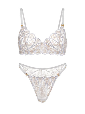 Introducing "Heavenly Glow Radiance Luxe Lingerie Set," a celestial blend of white satin and golden thread embroidery, creating an ethereal lingerie experience. Elevate your moments with the divine touch of opulence. ✨ ✨