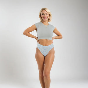 Presenting our new series of printed cotton bikinis. These beauties are both comfortable and flattering, with a pretty high waist/high leg silhouette and a lovely delicate lace trim. The cotton is so soft and the back offers less coverage than our other cotton undies. Available in sizes XS-2X. These are sold as a three-pack, including one of each print. Please check the size chart to know which size is right for you!