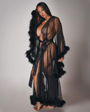 Unleash your inner diva with our Hollywood Glam Luxury Robe, made with marabou and soft tulle, and featuring full-length kimono sleeves that evoke the glamour and sophistication of old Hollywood. This luxurious robe is perfect for lounging at home or as a statement piece for a special occasion.