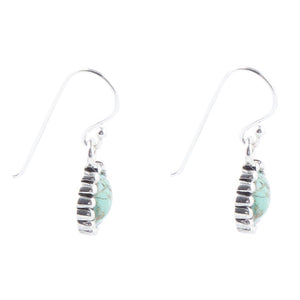 Experience the ultimate style with these exquisite Hope Floats Blue Turquoise Earrings. The delicate sterling silver setting showcases striking drops of cool blue turquoise, adding an elegant and distinctive touch to any outfit. Handcrafted with authentic turquoise and sterling silver, these earrings radiate effortless beauty and sparkle with every movement! Dimensions: Dangles 1" from ear wire and measures .4" at its widest point.