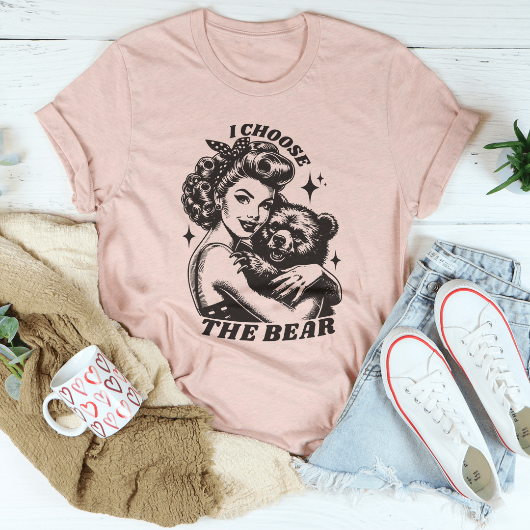 Step into the wild with our "I Choose The Bear" T-shirt. This bold tee is perfect for those who feel a connection with the great outdoors and the majestic creatures that inhabit it. It’s not just a piece of clothing; it’s a statement of your adventurous spirit and respect for nature.