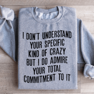 Featuring the quirky phrase "I Don't Understand Your Specific Kind Of Crazy" in a bold, eye-catching font, this sweatshirt is a surefire conversation starter. It's ideal for casual meet-ups, coffee dates, or just lounging around, offering a light-hearted take on the myriad personalities we encounter daily.