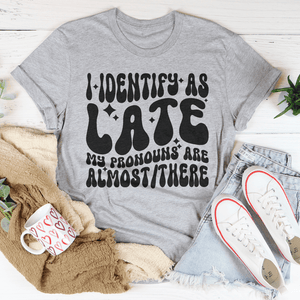 I Identify As Late My Pronouns Are Almost It Here Tee