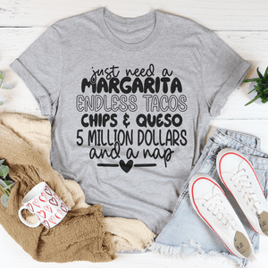 I Just Need A Margarita Endless Tacos Chips Tee
