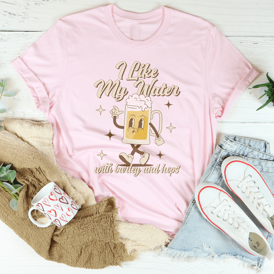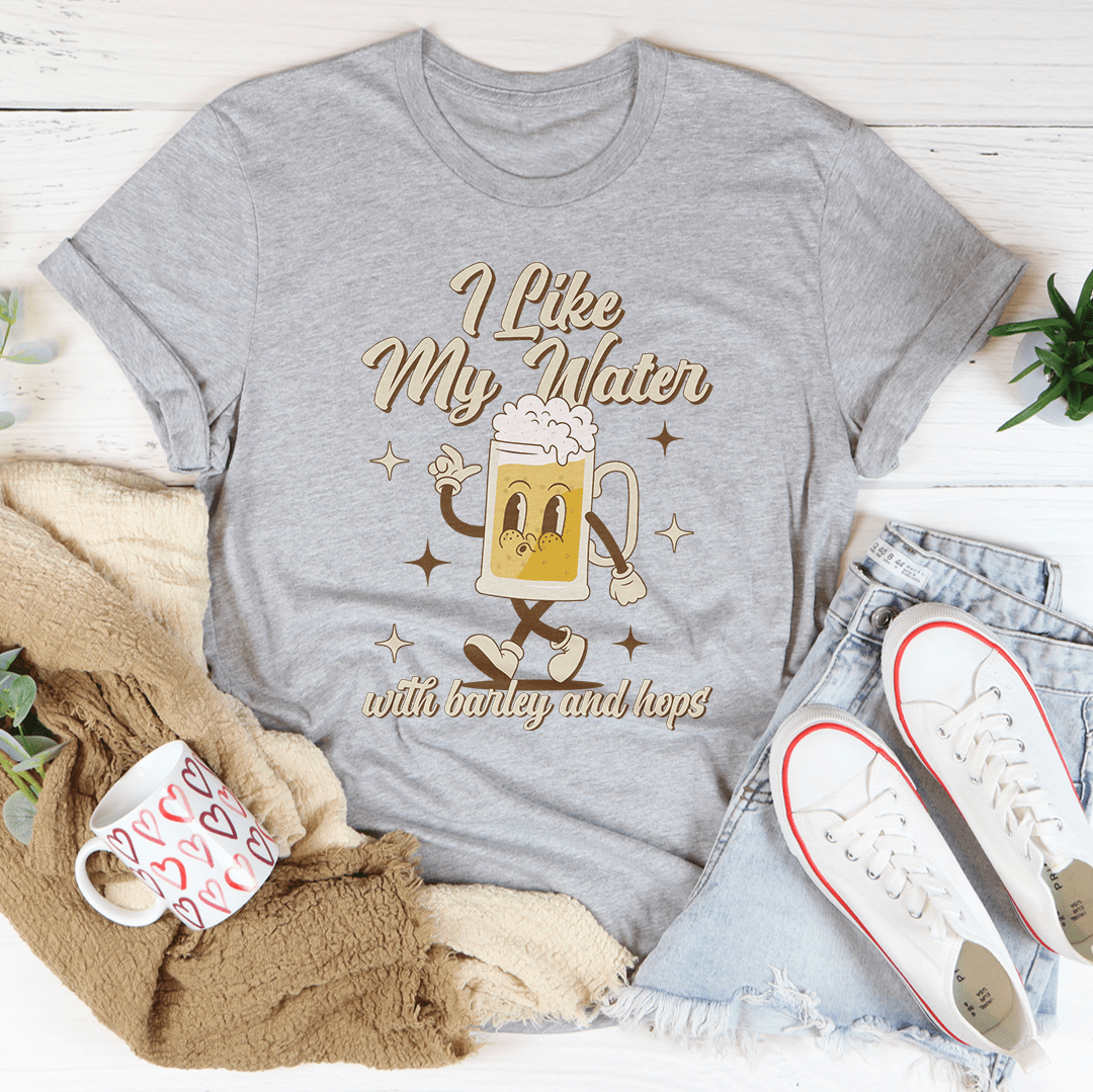 Celebrate your love for the finer brews in life with our "I Like My Water with Barley and Hops" T-shirt. Tailored for those who appreciate a good pint, this shirt is as bold as your favorite beer.