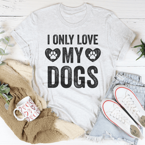 Celebrate your unwavering devotion to your furry friends with our "I Only Love My Dogs" T-shirt. This tee is a heartfelt homage to the paw-shaped prints on your heart, perfect for the dog lover whose affection knows no bounds. It's for those who understand that true love comes on four legs and is covered in fur.